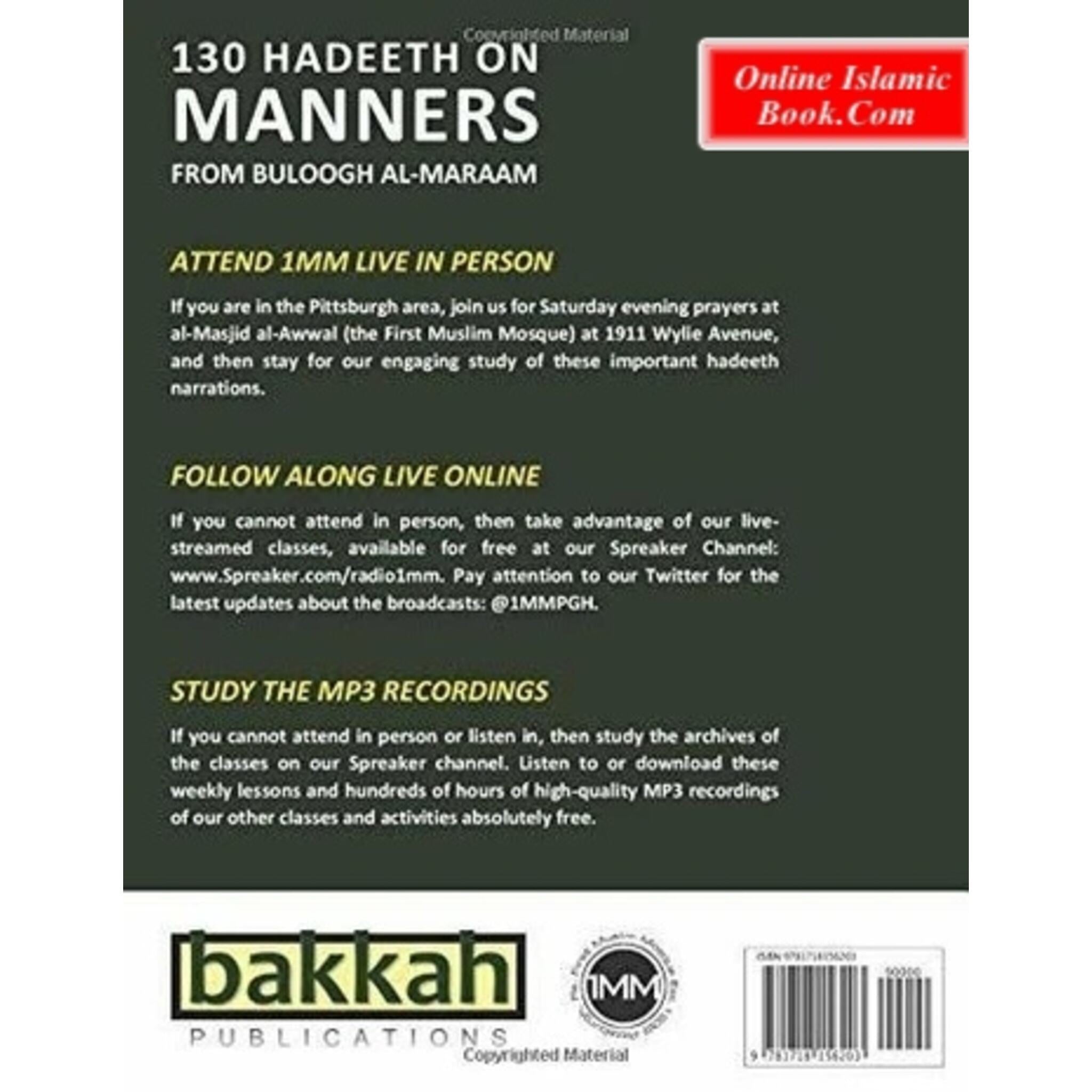 Moosaa Richardson's "130 Hadeeth on Manners from Buloogh al-Maraam Workbook" is a resource that provides a compilation of 130 Hadith (sayings and acts of the Prophet Muhammad) centered on etiquette and good behavior. This workbook is an excerpt from the larger work "Buloogh al-Maraam," a collection of Hadiths on a variety of legal and ethical topics.