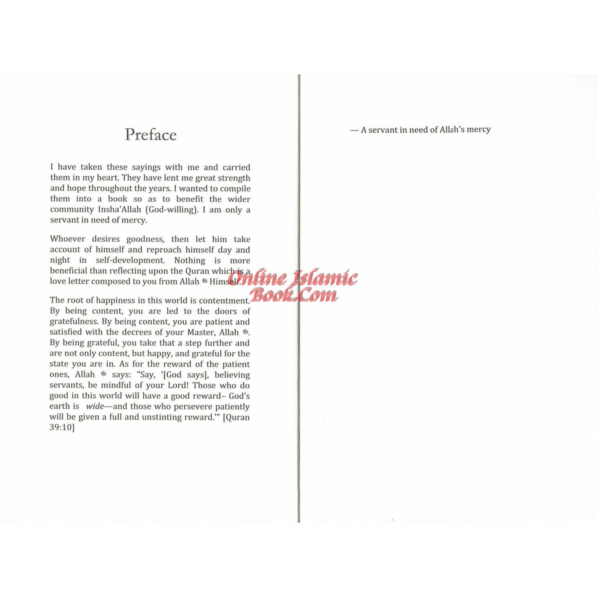 A selection of beautiful and practical pieces of advice from the Quran,the Prophet PBUH and Islam's great scholars on repentance, guidance and purification. This book is designed to serve as a source of hope and strength for those going through difficult times, while providing numerous important pieces of knowledge and guidance for all readers and all times.