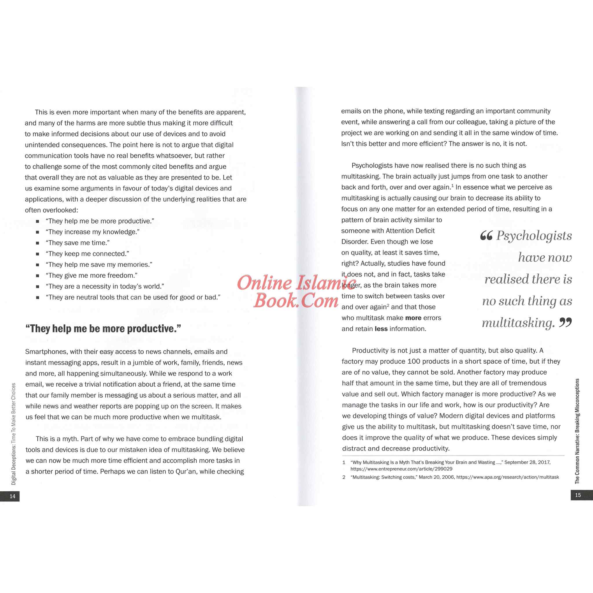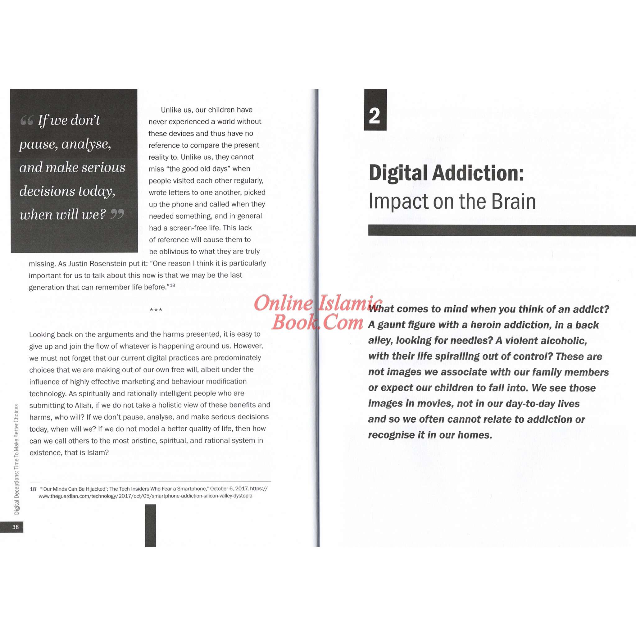 Digital devices have drastically shaped our lives and changed how we do almost everything. Because of their ease and convenience, we often make use of whatever is available without a second thought. Smartphones, social media, apps, internet, video games... If it's new, easier, and faster, it must be better, right? Have we stopped to ask what are the benefits and harms of these devices? As we spend more and more time on our screens, what does this mean for us spiritually, psychologically, socially and even physically? Knowing the answers to these questions can help us make better choices. Digital Deceptions explains the proven harms behind those seemingly free and convenient devices and services, and shows us a liberating, practical and more balanced way to live, worship and parent in this digital age using the timeless spiritual and rational principles of Islam. "Comprehensively addresses a Critical need of our time."