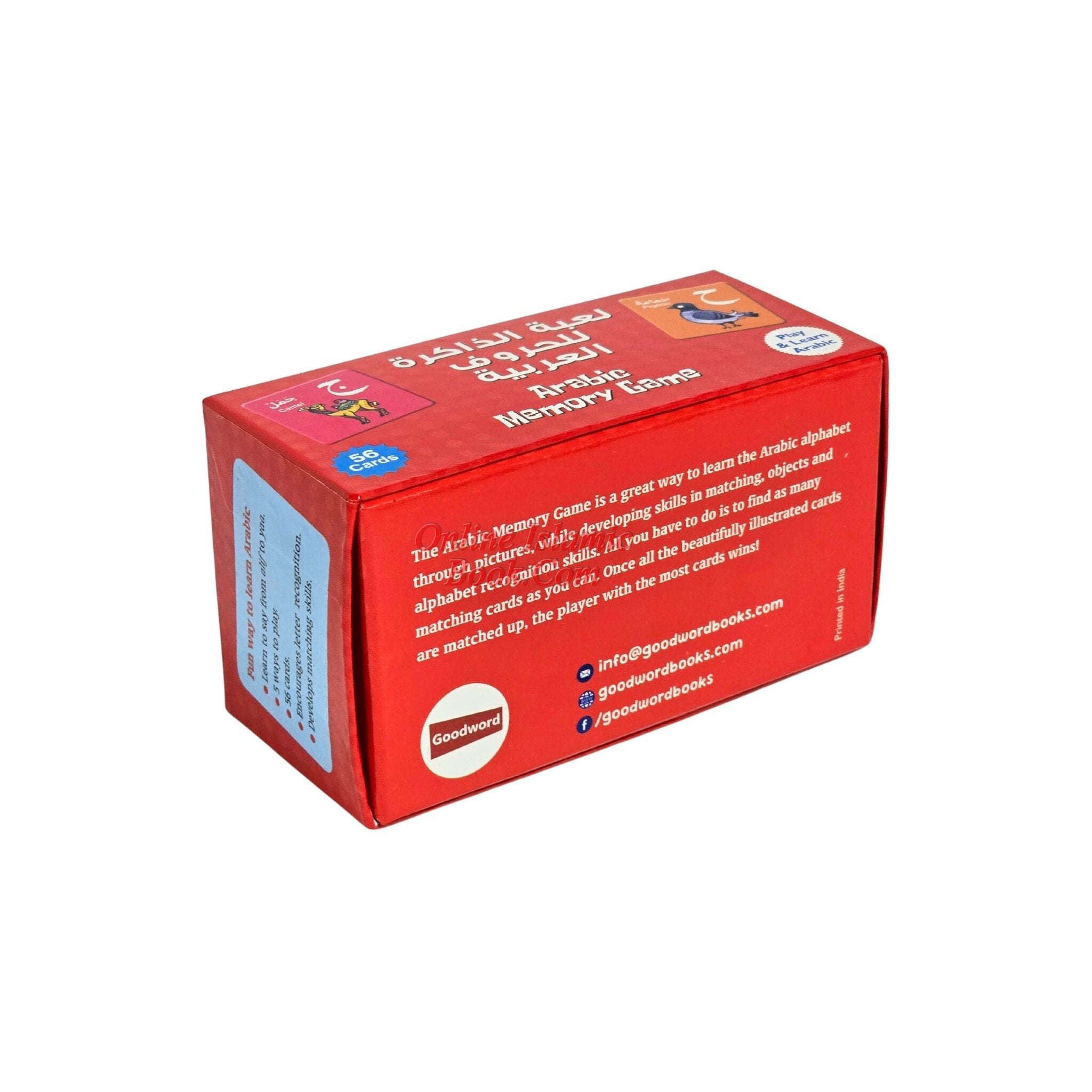 A book named "Arabic Memory Game By Saniyasnain Khan" is likely to include some number of playing cards or pages with Arabic words, phrases, or images. To evaluate and improve the player's memory and Arabic language skills, the objective of the game is to match pairs of related cards..Arabic Memory Game is an easy, fun, and fast-paced game for two or more players. It a great way to learn the Arabic alphabet and pictures while developing concentration, matching, and object and letter recognition skills. All you have to do is to find as many matching tiles as you can. Once all the beautifully illustrated tiles are matched up, the player with the most tiles wins!