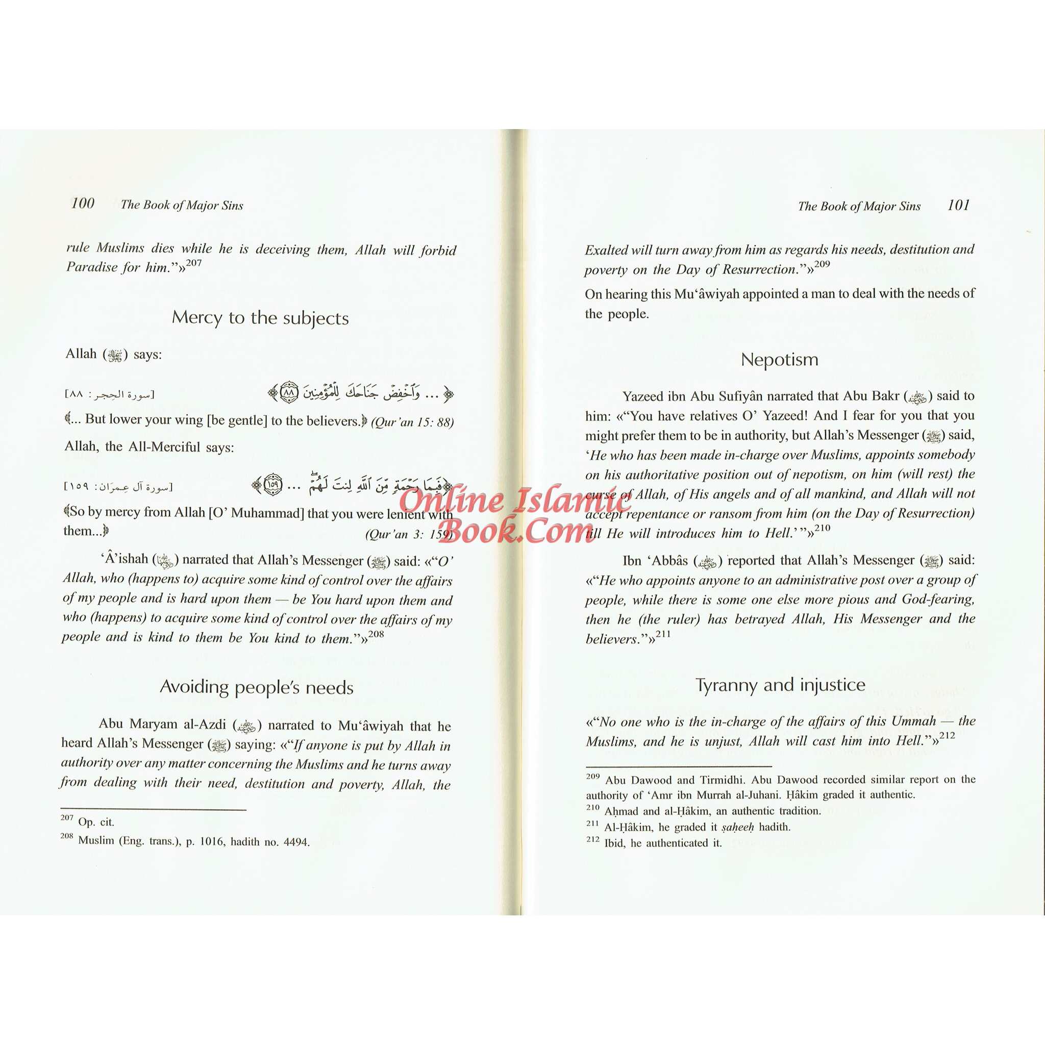 The book's principal sins are strongly anchored in Quranic passages and Hadith traditions. Imam at-Tamimi uses original Islamic scriptures to explain the severity of each sin and underlines the need to avoid these sins for spiritual well-being.