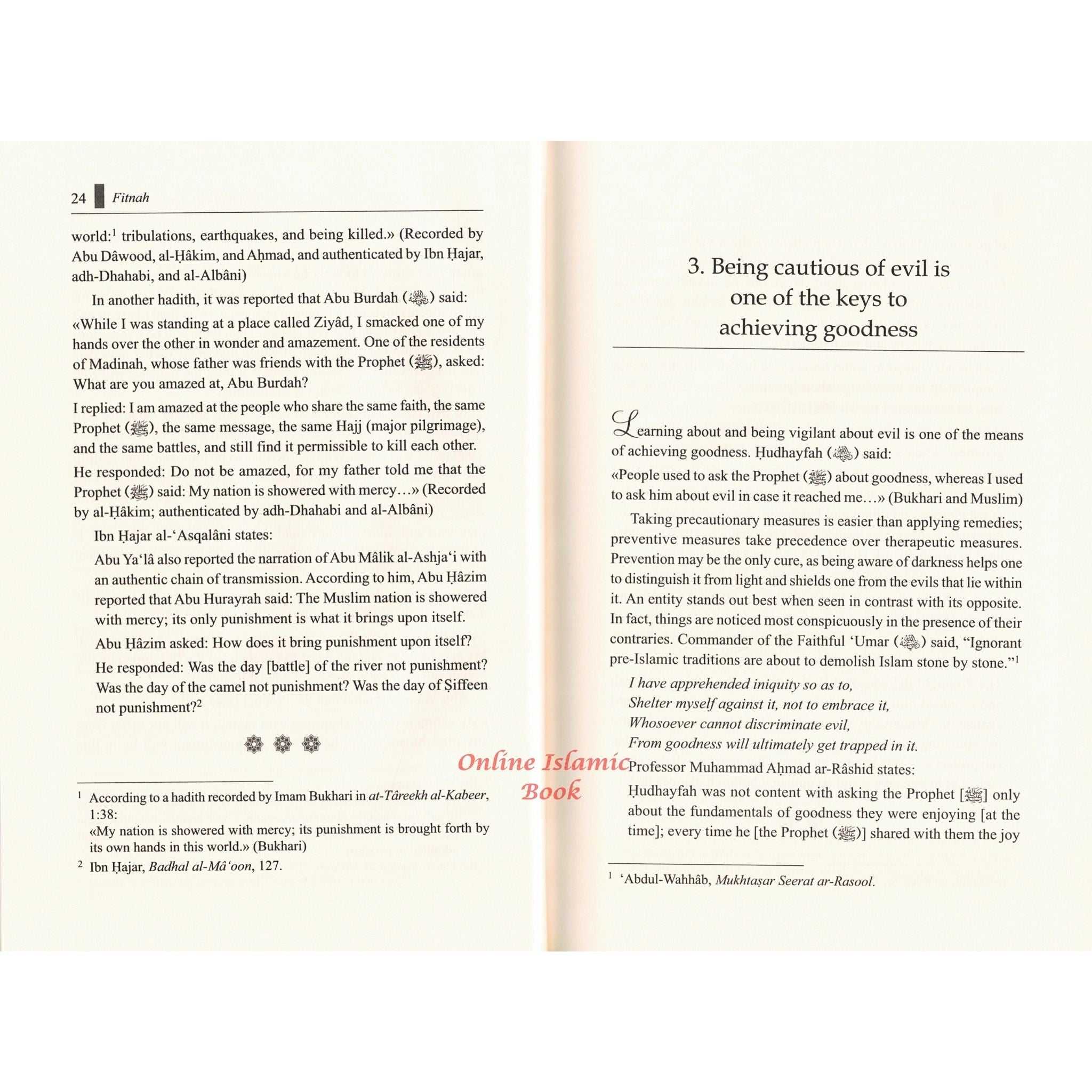 Fitnah The Concept of Discord and Conflict Among Muslims describes the characteristics of fitnah (turmoil) by referring to the statements of Prophet Muhammad (SH), his companions, Islamic scholars, and other knowledgeable individuals.