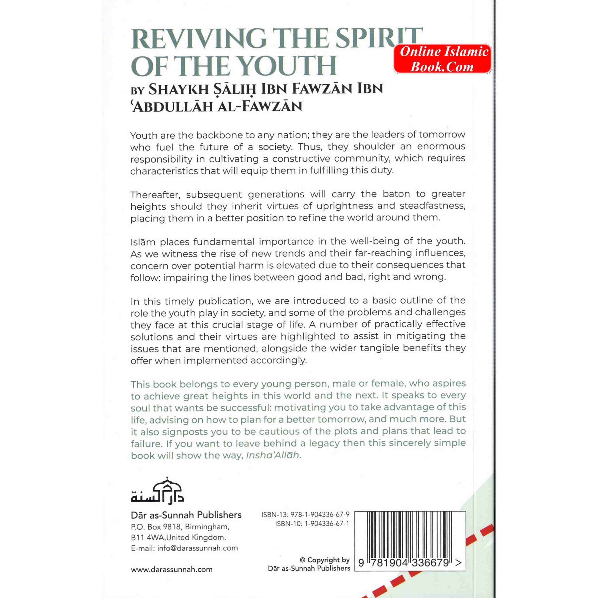In this timely publication, we are introduced to a basic outline of the role the youth play in society, and some of the problems and challenges they face at this crucial stage of life. A number of practically effective solutions and their virtues are highlighted to assist in mitigating the issues that are mentioned, alongside the wider tangible benefits they offer when implemented accordingly. This book belongs to every young person, male or female, who aspires to achieve great heights in this world and the next. It speaks to every soul that wants be successful: motivating you to take advantage of this life, advising on how to plan for a better tomorrow, and much more. But it also signposts you to be cautious of the plots and plans that lead to failure. If you want to leave behind a legacy then this sincerely simple book will show the way, Insha’Allah.