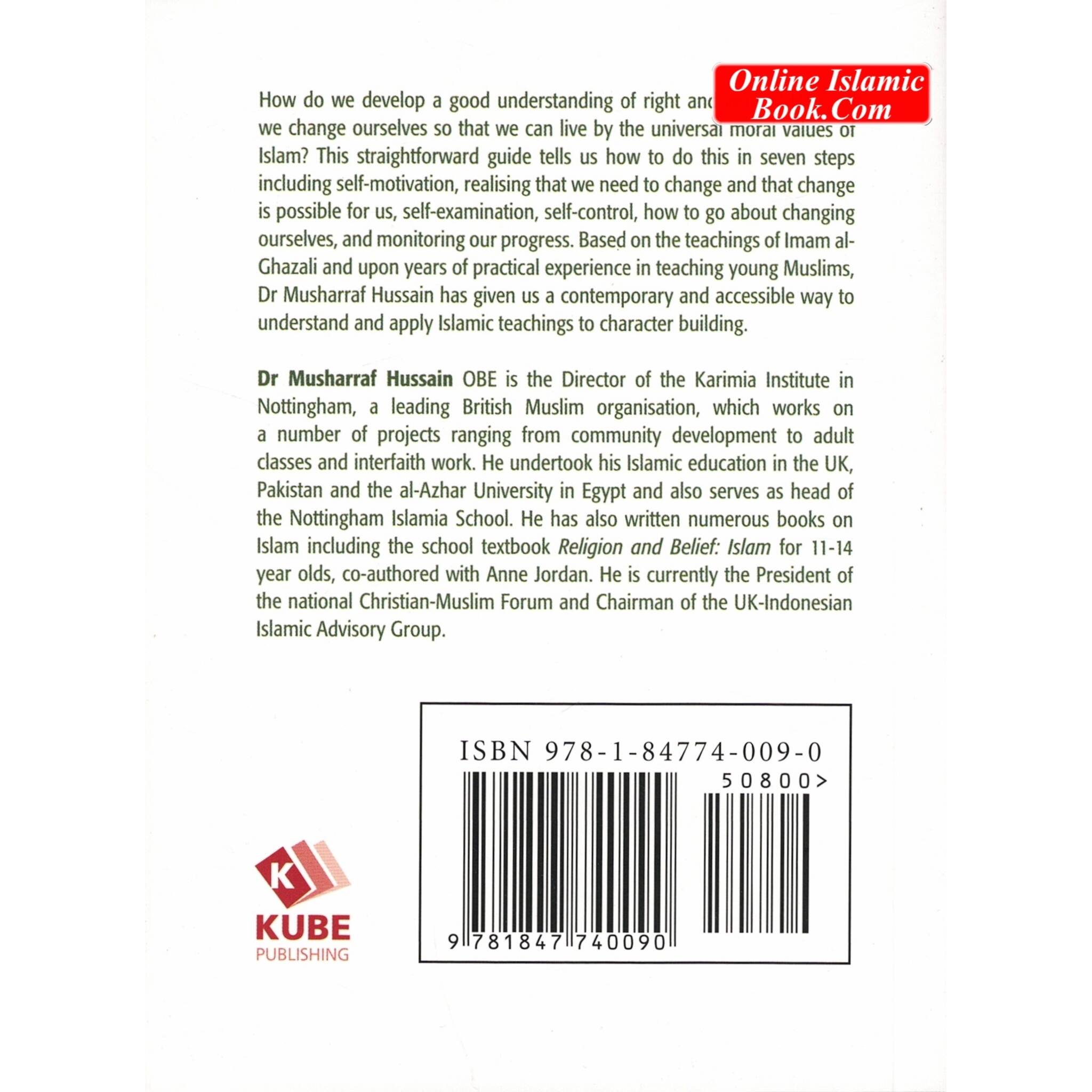 How do we develop a good understanding of right and wrong? How do we change ourselves so that we can live by the universal, moral values of Islam? This handbook tells us how to go about changing ourselves in seven steps. Based on Imam Ghazali's teachings, this handbook is attractively laid out and easy to understand. Musharraf Hussain is the chief executive of the Karimia Institute. In 2009 he was nationally recognized for his services to community relations in Britain. He is also a chair of the United Kingdom's national Christian-Muslim Forum.