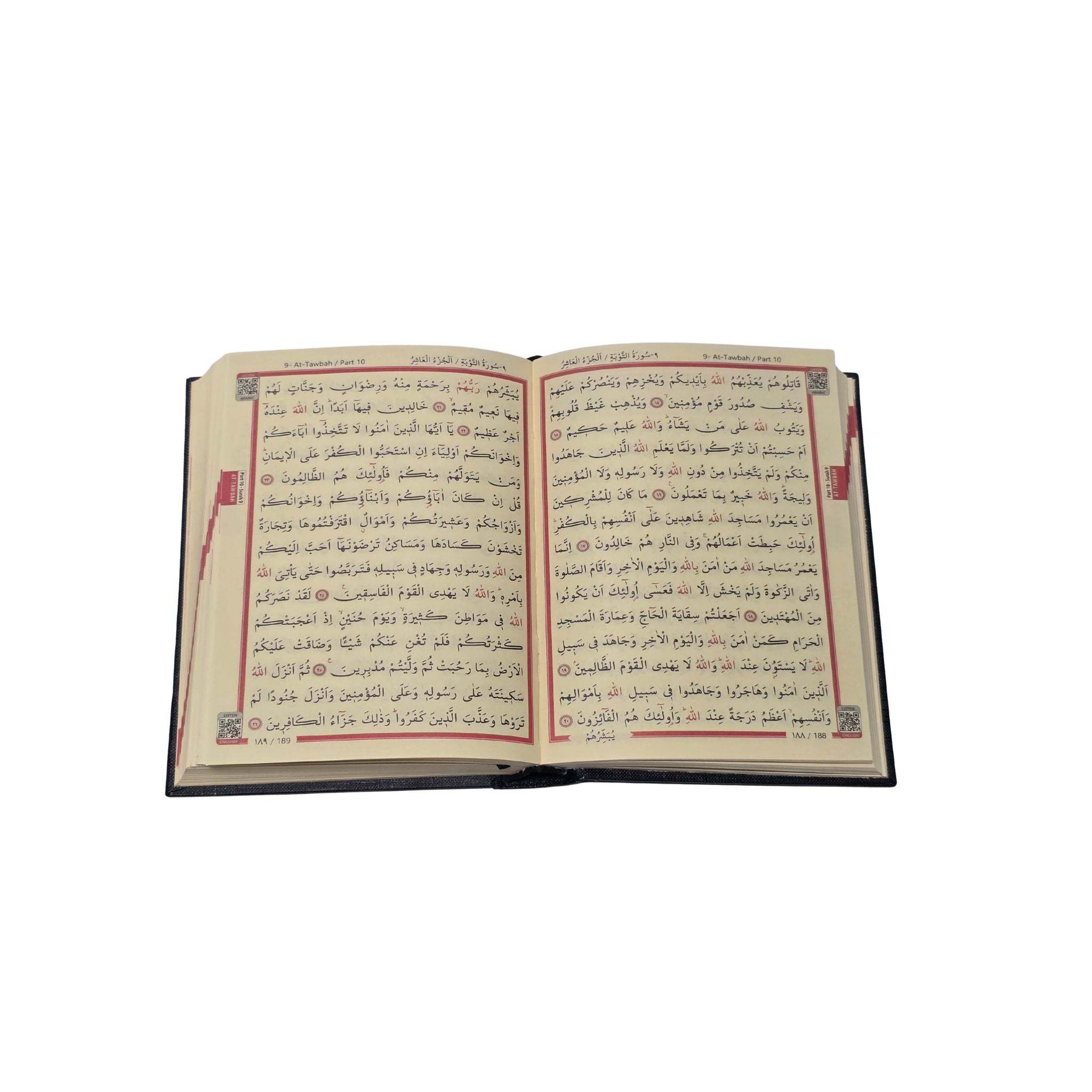 The QR Quran is a beautifully printed medium-size 15-line Mushaf in elegant 2-color Uthmani script (Turkish style), designed for ease of reading and memorization. What sets this Quran apart is its smart QR code feature, which allows you to listen to the recitation or translation of any page, surah, or juz using your smartphone. Simply scan the QR code printed on each page with any mobile phone—no special device required. The code will instantly direct you to high-quality audio for that specific portion of the Quran. Whether you want to listen to a soothing recitation or understand the meaning through translation, this feature brings the Quran to life with just a quick scan.
