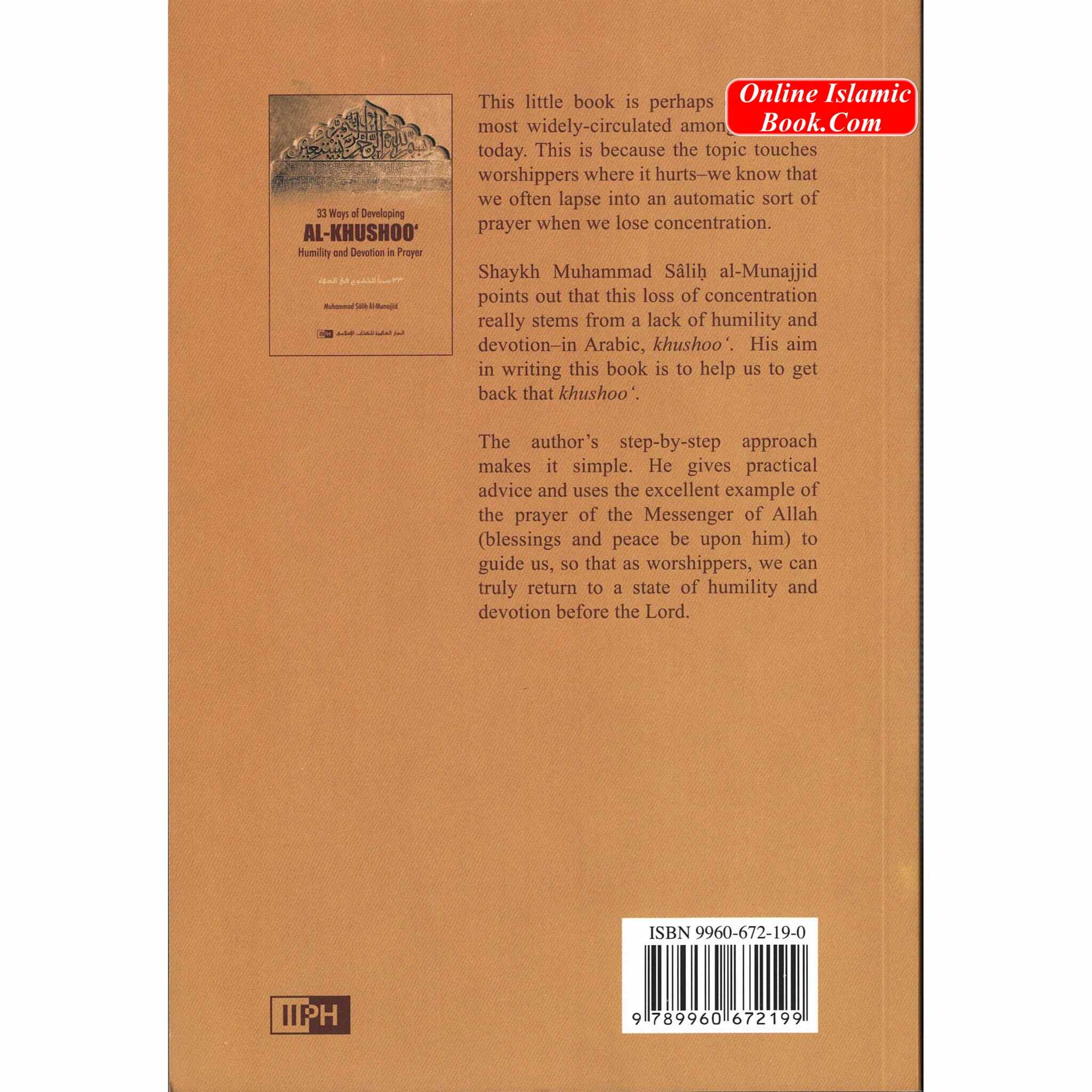 In "33 Ways of Developing Al Khushoo," Sheikh Muhammad Salih Al-Munajjid takes readers on a transforming journey to improve their prayer experience through humility and devotion. This enlightening book gives 33 practical methods for deepening one's relationship with Allah during Salah (prayer), providing useful insights to assist individuals in overcoming distractions and achieving a state of profound focus and humility in their devotion.