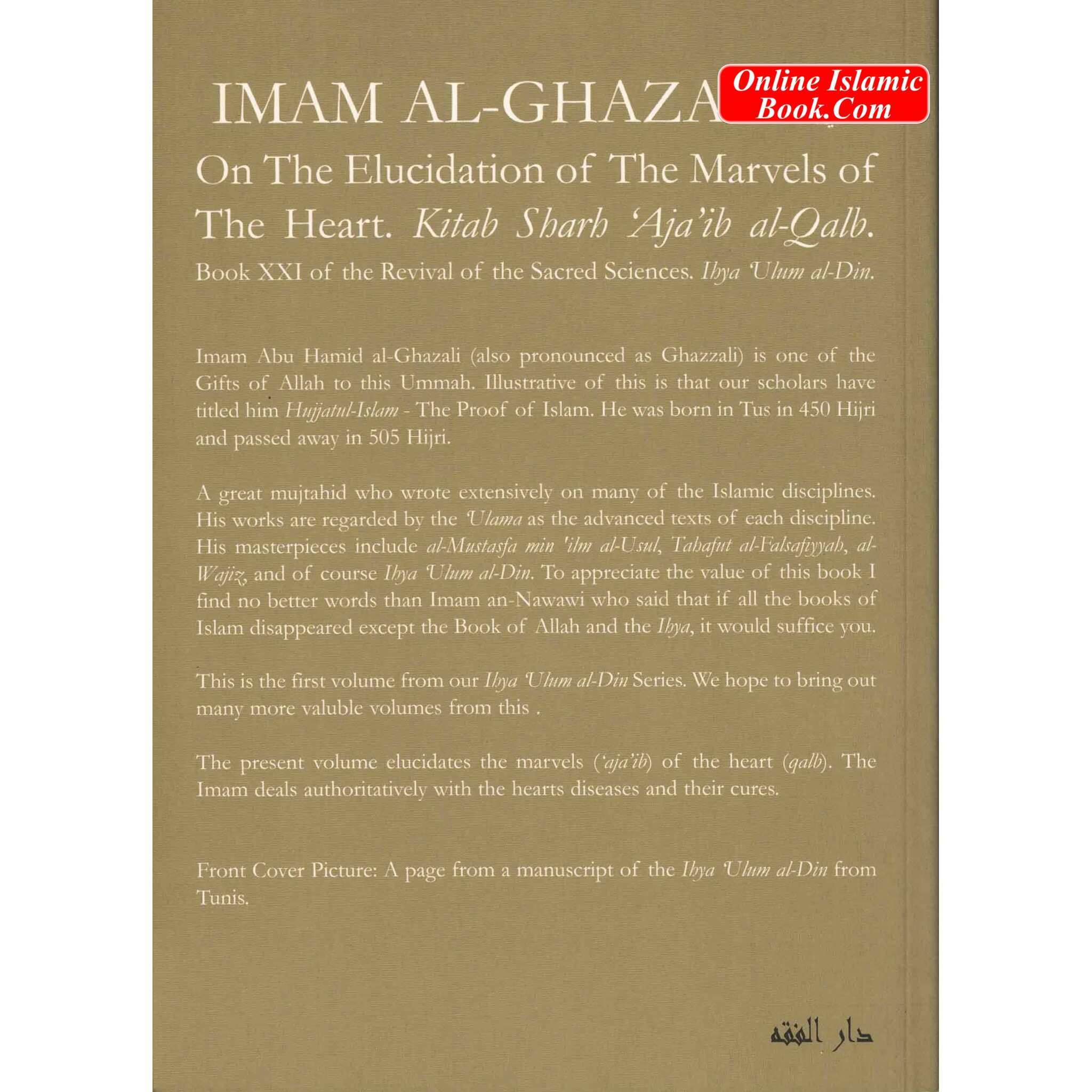 " Imam Al Ghazali " this is the first volume from our Ihya 'Ulum Al-Din Series. We hope to bring out many more Subic volumes from this. The present volume elucidates the marvels ('Aja'ib) of the heart (Qalb). The Imam deals authoritatively with the hearts diseases and their cures.