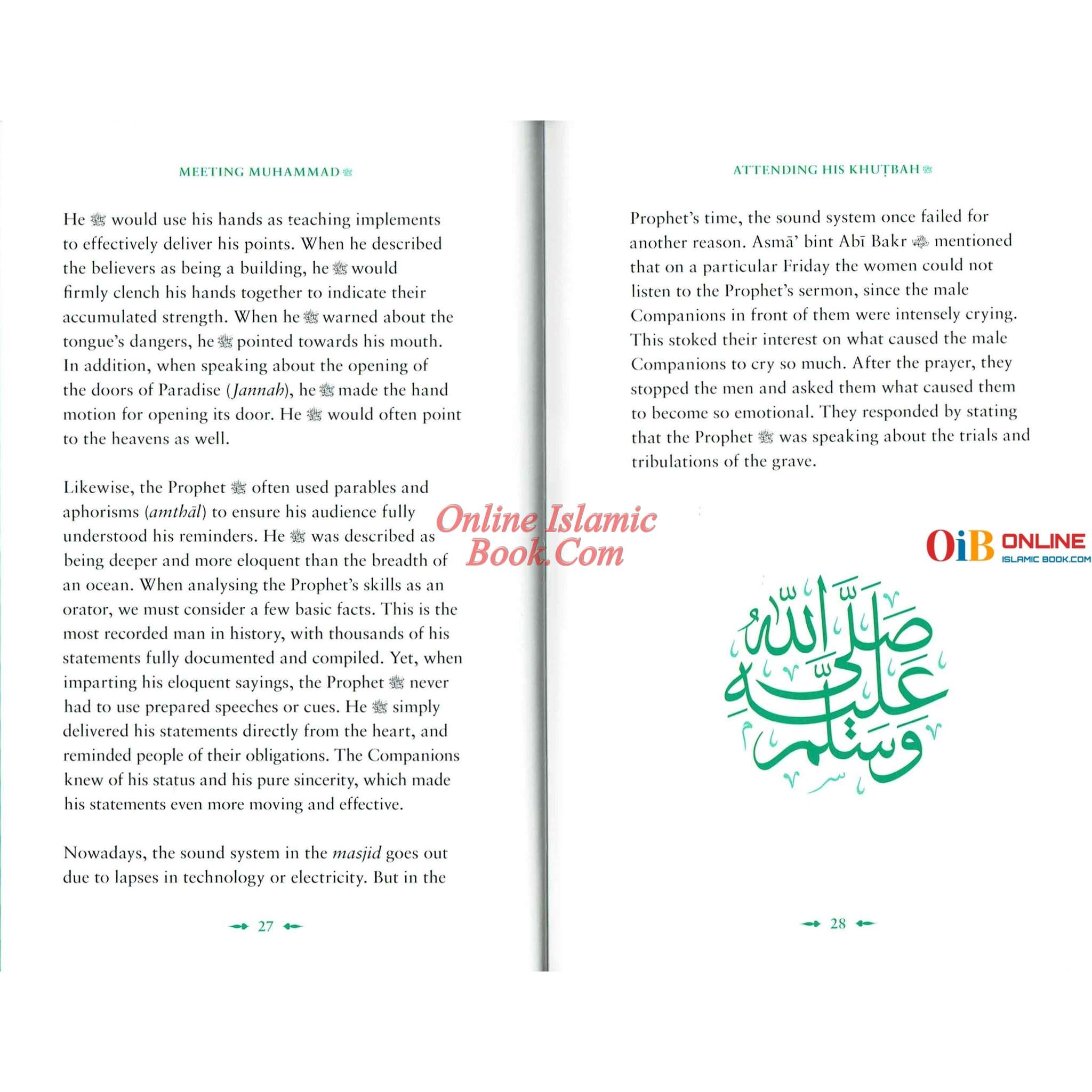 This fascinating book explores the significant effects and life-changing encounters that people had with the Prophet Muhammad (peace be upon him) throughout his lifetime. These interactions demonstrate the profoundly transformational impact he had on people from all areas of life through his presence, words, and character. The book "Meeting Muhammad" encourages readers to ponder on the timeless lessons learned from the Prophet's relationships with various people. It highlights his lasting legacy and the deep influence of his teachings.My eyes have never seen anything better than you. No woman has ever given birth to anyone as beautiful as you. You were created free from all flaws. As if you were created exactly as you wished. – Hassan Ibn Thabit (RA) Allah has never sent a Prophet except that Prophet had a beautiful face and a beautiful voice. In the case of the Prophet Muhammad (PBUH) as Ali (RA) said, “I’ve never seen anything like him, before him or after him”. However, as stunning as the Prophet Muhammad (PBUH) appearance was, his character was even more strikingly beautiful. Do you ever wonder what it would be like to be in the presence of Prophet Muhammad ﷺ, as his companions were? What would it be like to see him, to host him in your home, pray behind him, and have him as a teacher and friend? Through 30 beautifully detailed chapters with narrations from companions, take a journey from only knowing about him to knowing him and loving him and feel what it was like to be a companion of his in this life and strive to be companions of his in the next.